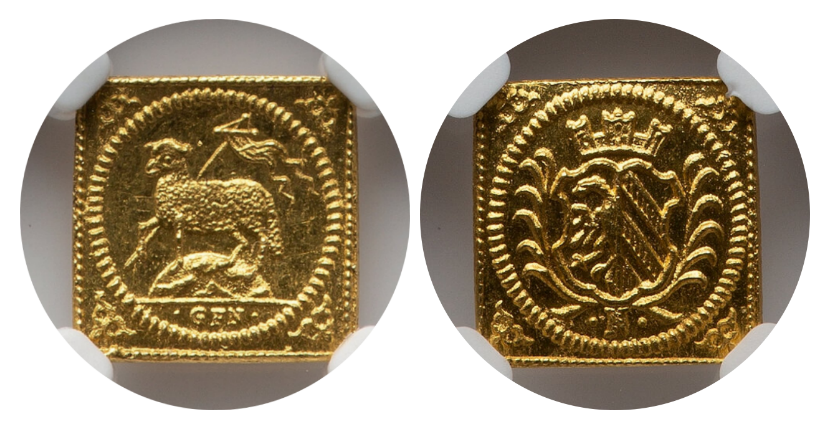 【入荷案内】1700年 角ラムダカット(Klippe)1/4ダカット金貨 MS65